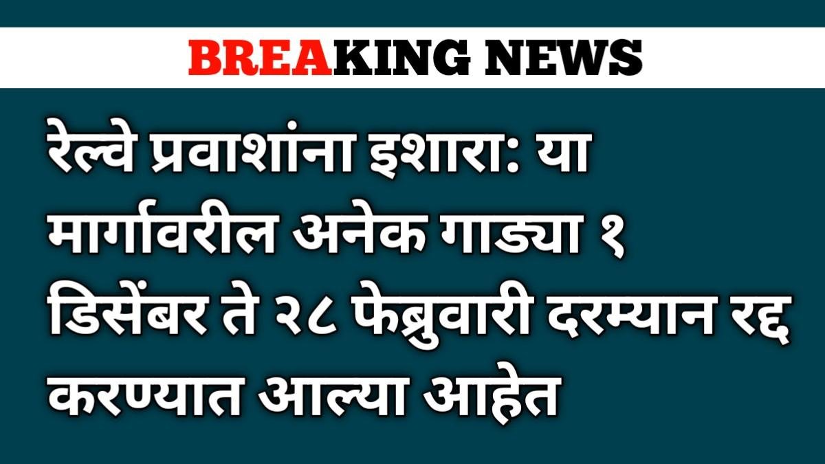 रेल्वे प्रवाशांना इशारा: या मार्गावरील अनेक गाड्या १ डिसेंबर ते २८ फेब्रुवारी दरम्यान रद्द करण्यात आल्या आहेत.Indian railway update